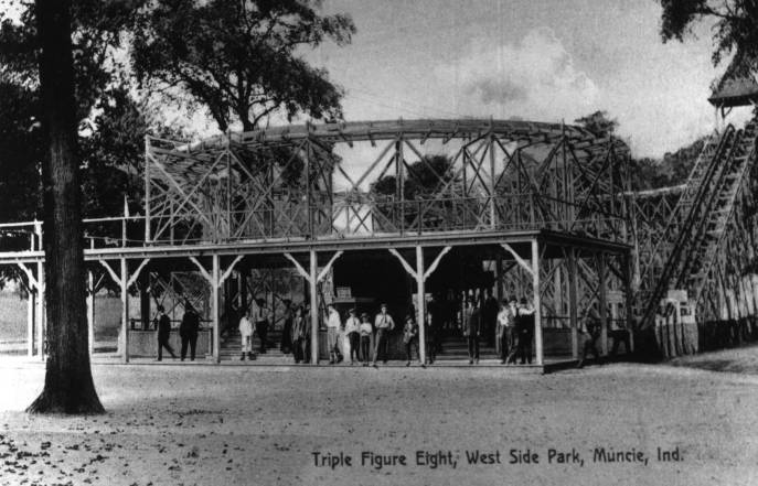 Triple figure eight roller coaster at West Side Park, (c. 1915), P.40, Spurgeon-Greene Photographs Collections, Ball State University.University Libraries. Archives and Special collections, https://dmr.bsu.edu/digital/collection/sg/id/1192.