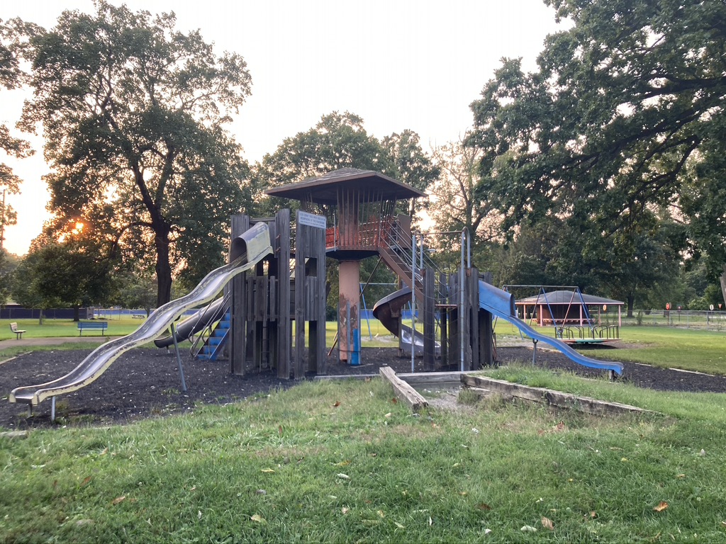McCulloch Park, Muncie’s largest community park, is located in the southwest corner of the Whitely Neighborhood, adjacent to the Minnetrista, McKinley, and East Central Neighborhoods. McCulloch Park serves the entire community of Muncie. Access to McCulloch Park is available from adjacent bus routes along Dr. Martin Luther King Jr. Blvd., or from a short walk from routes along Elm St. McCulloch Park is also accessible from White River Greenway (running along the southern boundary of the park) and Cardinal Greenway, with the McCulloch Trailhead located just west of the park. Parking lots are available in multiple locations throughout the park, which include bike racks at a couple locations. McCulloch Park Dr. meanders through the park running north-south. The park is split in half by Highland Ave., running east-west. The park has amenities such as two basketball courts, a large disc-golf course, open green-space with walking trails, two playground structures along with a restroom facility, a soapbox derby racing hill, and even a historical baseball field that has once been used for Minor and Major league games.
